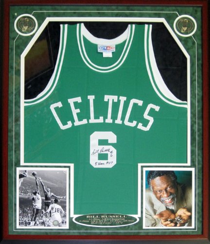 Bill Russell "5 Time MVP" Autographed / Signed Framed Boston Celtics Jersey w/ Unsigned 8x10 Photos Review